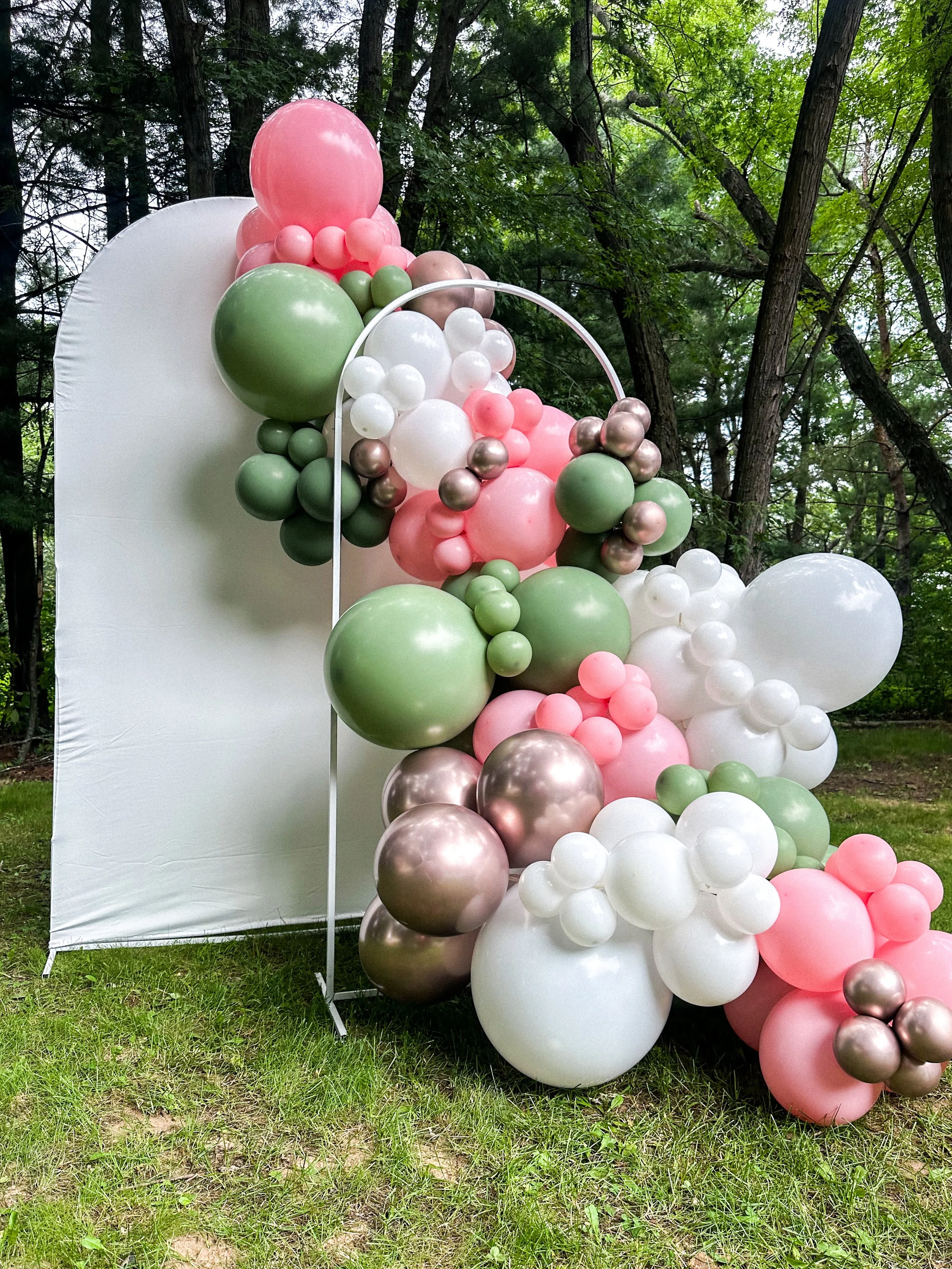 The fan favorite of our arch rentals is our 7 foot wooden arch! This is a solid, sturdy arch, available in white. Can be painted other colors for a fee ($50). This is a great backdrop with or without balloons. Inquire today, rental days are going fast!