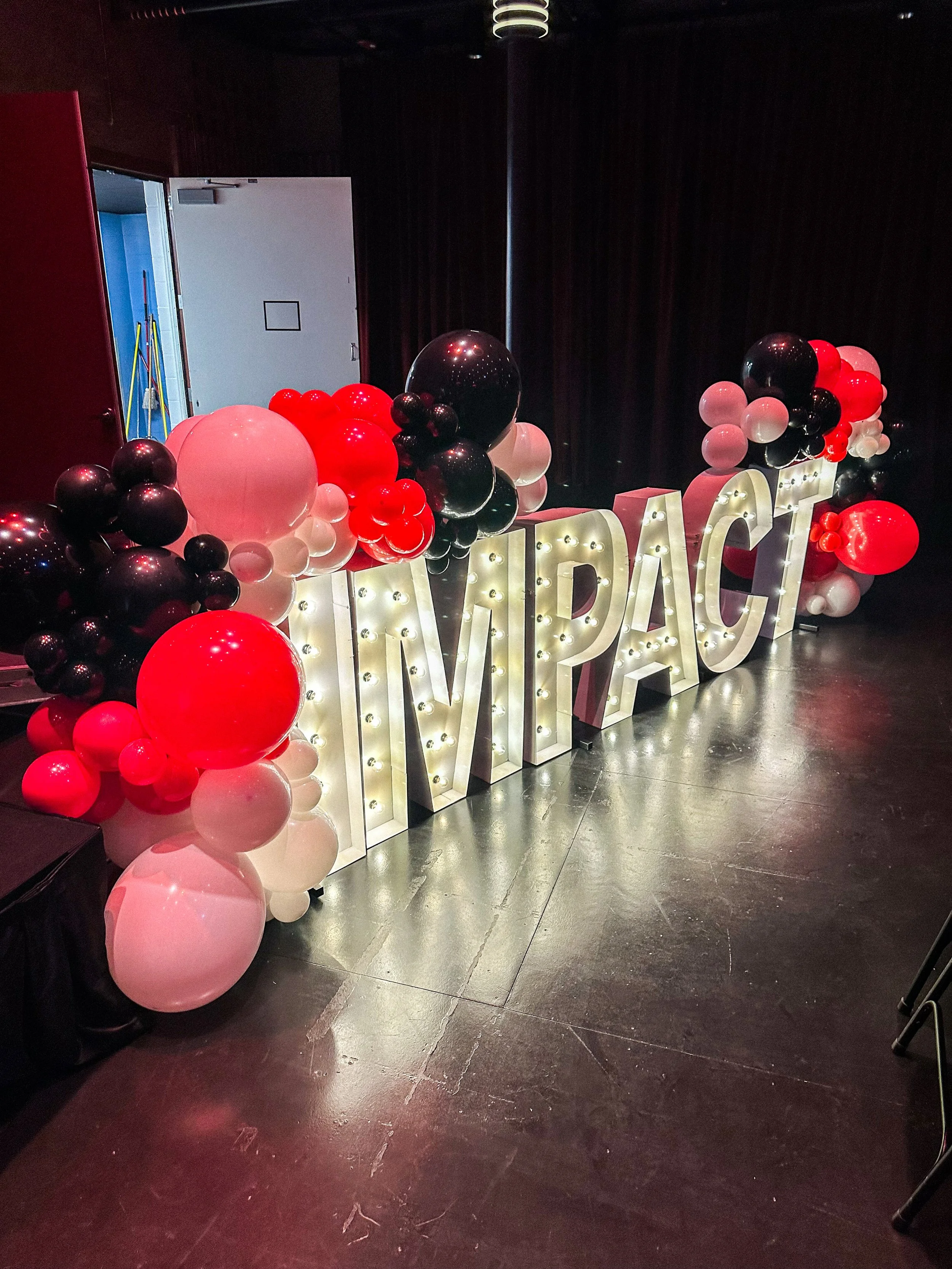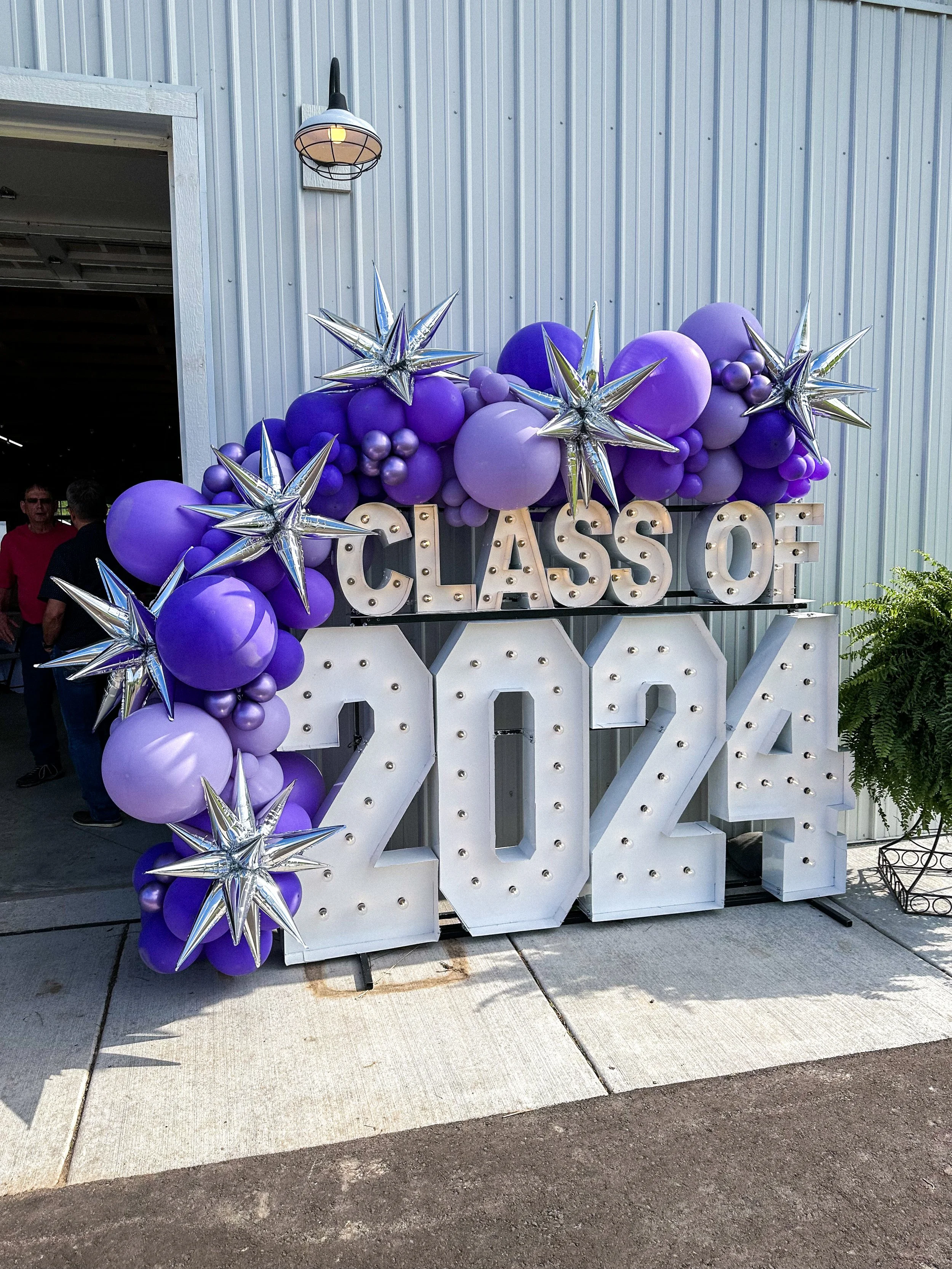 Rent some marquee lights for your balloons to surround! (Letters and numbers for rent from Alpha-lit Chippewa Valley)